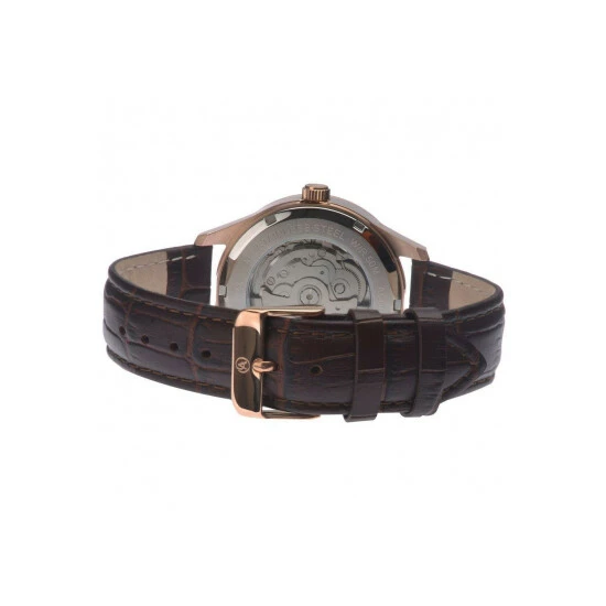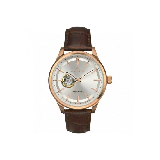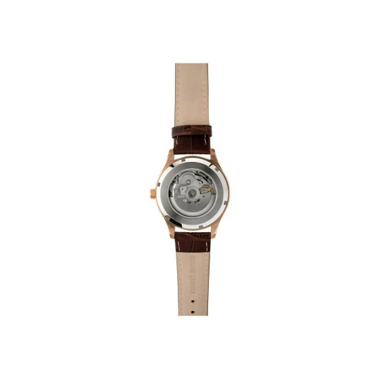 Primary Material : Stainless Steel | Case depth approx : 13.00mm | Case width approx : 42.00mm | Case shape : Circle | Strap type : Leather strap | Strap colour : Brown | Clasp type : Strap buckle | Dial colour : Silver | Glass : Mineral | Movement : Automatic | Water Resistance : 50 metres | Guarantee : 2 years