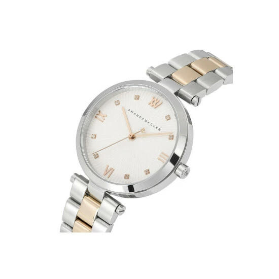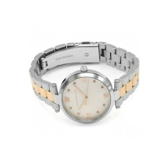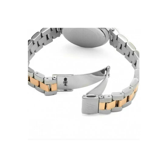 Battery Type : silver oxide | Primary Material : Stainless Steel | Case depth approx : 9.00mm | Case width approx : 34.00mm | Case shape : Circle | Strap type : Metal Bracelet | Strap colour : Two tone | Clasp type : Butterfly | Dial colour : White | Glass : Mineral | Movement : Quartz | Movement Source : Japan | Water Resistance : 30 metres | Guarantee : 2 years