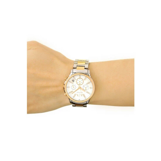 Battery Type : silver oxide | Primary Material : Plated Stainless Steel | Case depth approx : 10.00mm | Case width approx : 36.00mm | Case shape : Circle | Strap type : Metal bracelet | Strap colour : Two tone | Clasp type : Push-button Deployment | Dial colour : Mother of pearl | Glass : Mineral | Movement : Quartz | Movement Source : Japan | Water Resistance : 50 metres | Includes date function | Guarantee : 2 years