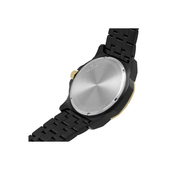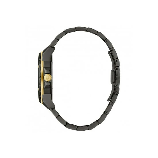 Primary Material : Stainless Steel | Case depth approx : 12.33mm | Case width approx : 44.00mm | Case shape : Circle | Strap type : Metal bracelet | Strap colour : Black | Clasp type : Deployment | Dial colour : Black | Glass : Mineral | Movement : Quartz | Movement Source : China | Water Resistance : 100 metres | Guarantee : 3 YEARS