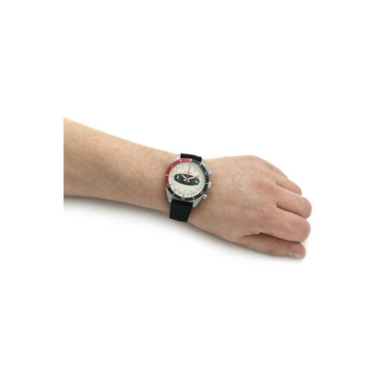 Primary Material : Stainless Steel | Case depth approx : 14.50mm | Case width approx : 40.50mm | Case shape : Circle | Strap type : Rubber Strap | Strap colour : Black | Clasp type : Special buckle | Dial colour : Cream | Glass : Sapphire | Movement : Quartz | Water Resistance : 200 metres | Guarantee : 3 years