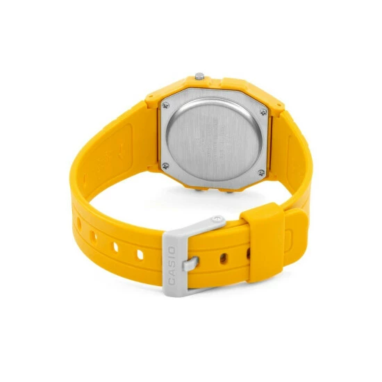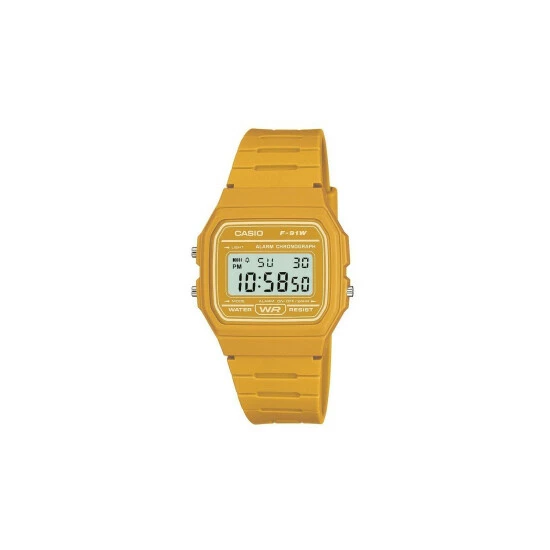 Primary Material : Plastic/Resin | Case depth approx : 9.00mm | Case width approx : 37.00mm | Case shape : Square | Strap type : Plastic/Resin Strap | Strap colour : Yellow | Clasp type : Strap buckle | Dial colour : LCD | Glass : Acrylic | Movement : Quartz | Movement Source : Japan | Water Resistance : Water resistant | Includes date and alarm functions | Guarantee : 2 years