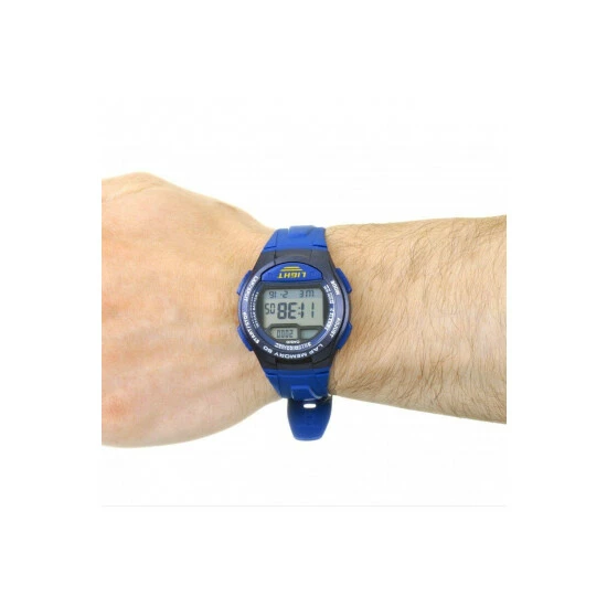 Primary Material : Plastic/Resin | Case depth approx : 13.00mm | Case width approx : 42.00mm | Case shape : Circle | Strap type : Rubber Strap | Strap colour : Blue | Clasp type : Strap buckle | Dial colour : LCD | Glass : Acrylic | Movement : Quartz | Movement Source : Japan | Water Resistance : 50 metres | Includes date and alarm functions | Guarantee : 2 years