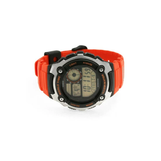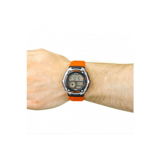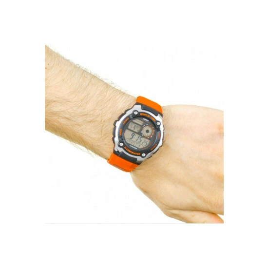 Primary Material : Stainless Steel | Case depth approx : 15.00mm | Case width approx : 47.00mm | Case shape : Circle | Strap type : Rubber Strap | Strap colour : Orange | Clasp type : Strap buckle | Dial colour : LCD | Glass : Acrylic | Movement : Quartz | Movement Source : Japan | Water Resistance : 200 metres | Includes date and alarm functions | Guarantee : 2 years