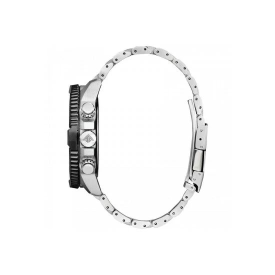 Primary Material : Stainless Steel | Case shape : Circle | Strap type : Metal bracelet | Strap colour : Silver | Clasp type : Fold-over Deployment | Dial colour : Black | Glass : Sapphire | Movement : Eco-drive | Movement Source : China | Water Resistance : 200 metres | Includes alarm function | Guarantee : 5 years