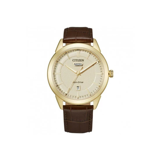 Primary Material : Stainless Steel | Case width approx : 40.00mm | Case shape : Circle | Strap type : Leather strap | Strap colour : Brown | Clasp type : Strap buckle | Dial colour : Champagne | Glass : Sapphire | Movement : Eco-drive | Movement Source : China | Water Resistance : 100 metres | Guarantee : 5 years