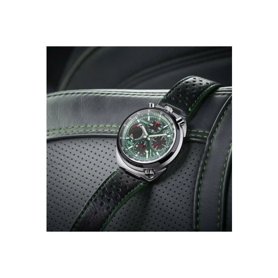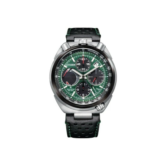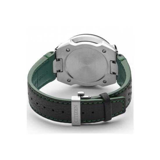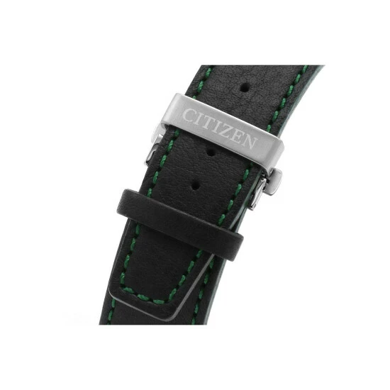 Primary Material : Stainless Steel | Case width approx : 45.00mm | Case shape : Circle | Strap type : Leather strap | Strap colour : Black | Clasp type : Strap buckle | Dial colour : Green | Glass : Anti-Reflective Sapphire Crystal | Movement : Eco-drive | Movement Source : Japan | Water Resistance : 200 metres | Includes date function | Guarantee : 5 years