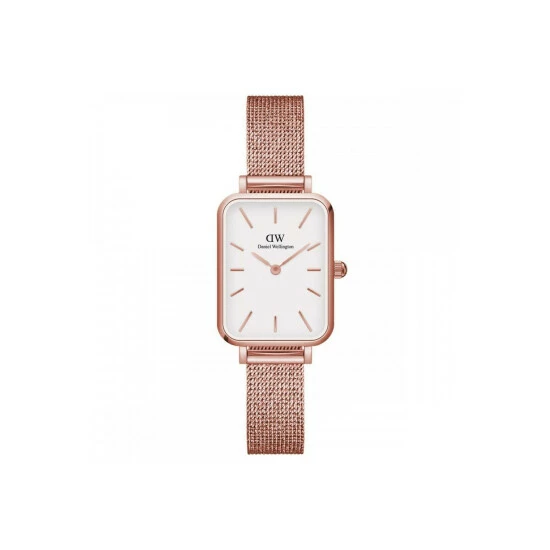 Primary Material : Stainless Steel | Case depth approx : 0.50mm | Case width approx : 20.00mm | Case shape : Rectangle | Strap type : Mesh Bracelet | Strap colour : Rose Gold | Clasp type : Clasp | Dial colour : White | Glass : Mineral | Movement : Quartz | Water Resistance : 30 metres | Guarantee : 2 YEARS