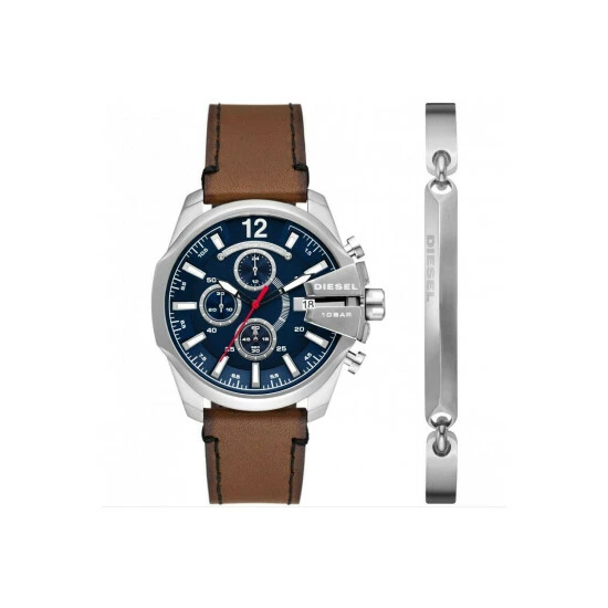 Battery Type : silver oxide | Primary Material : Stainless Steel | Case depth approx : 9.90mm | Case width approx : 43.00mm | Case shape : Other | Strap type : Leather strap | Strap colour : Brown | Clasp type : Strap buckle | Dial colour : Blue | Glass : Mineral | Movement : Quartz | Movement Source : Japan | Water Resistance : 100 metres | Guarantee : 2 Year Limited