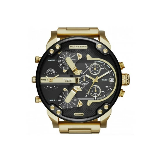 Battery Type : silver oxide | Primary Material : Stainless Steel | Case depth approx : 14.00mm | Case width approx : 57.00mm | Case shape : Circle | Strap type : Metal bracelet | Strap colour : Gold | Clasp type : Deployment | Dial colour : Black | Glass : Crystal | Movement : Quartz | Movement Source : Japan | Water Resistance : 30 metres | Includes date function | Guarantee : 2 years
