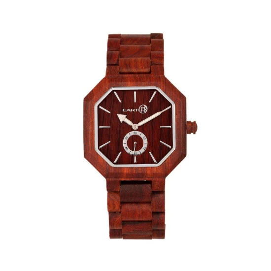 Eco-friendly sustainable wood case. Quality quartz movement. Non-glare scratch-resistant mineral crystal. Logo-engraved wood caseback. Eco-friendly sustainable wood bracelet. Logo-engraved stainless steel push-button deployment clasp. Luminous hands. Seconds sub-dial. 42mm diameter. Splash resistant. Due to seasons and aging of wood colors may be darker or lighter than pictured.