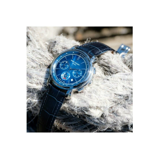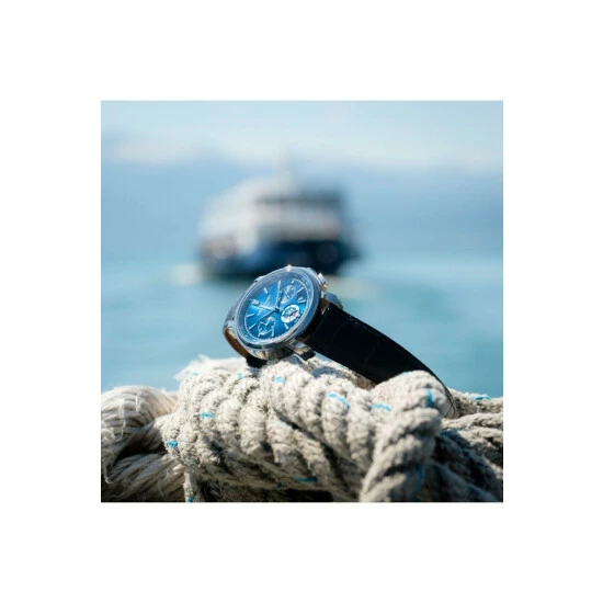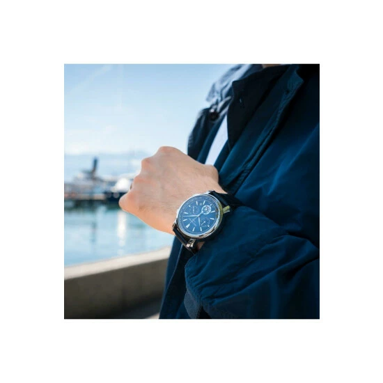 Primary Material : Stainless Steel | Case depth approx : 13.00mm | Case width approx : 42.00mm | Case shape : Circle | Strap type : Leather strap | Strap colour : Blue | Clasp type : Butterfly with push buttons | Dial colour : Blue | Glass : Sapphire | Movement : Automatic | Movement Source : Swiss | Water Resistance : 30 metres | Includes date function | Guarantee : 2 Years