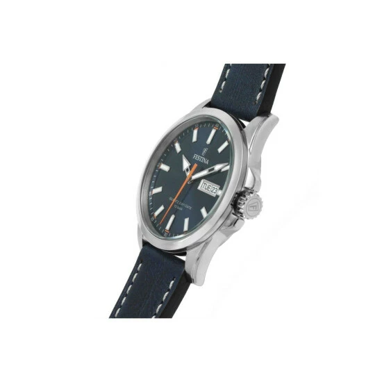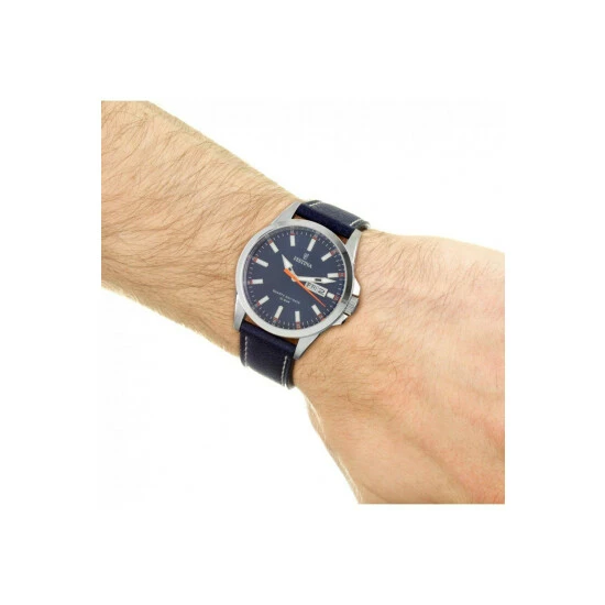 Battery Type : silver oxide | Primary Material : Stainless Steel | Case depth approx : 10.40mm | Case width approx : 41.00mm | Case shape : Circle | Strap type : Leather strap | Strap colour : Blue | Clasp type : Strap buckle | Dial colour : Blue | Glass : Mineral | Movement : Quartz | Movement Source : Japan | Water Resistance : 100 metres | Guarantee : 2 years