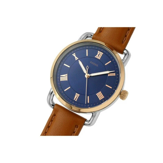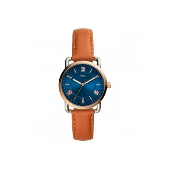 Battery Type : silver oxide | Primary Material : Stainless Steel | Case depth approx : 9.00mm | Case width approx : 34.00mm | Case shape : Circle | Strap type : Leather strap | Strap colour : Brown | Clasp type : Strap buckle | Dial colour : Blue | Glass : Mineral | Movement : Quartz | Movement Source : Japan | Water Resistance : 50 metres | Guarantee : 2 years