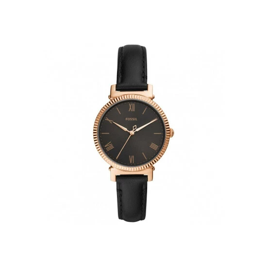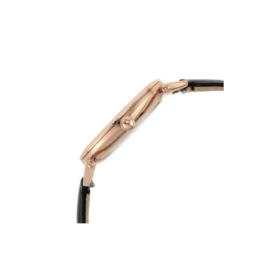 Battery Type : silver oxide | Primary Material : Stainless Steel | Case depth approx : 7.00mm | Case width approx : 34.00mm | Case shape : Circle | Strap type : Leather strap | Strap colour : Black | Clasp type : Strap buckle | Dial colour : Black | Glass : Mineral | Movement : Quartz | Movement Source : Japan | Water Resistance : 50 metres | Guarantee : 2 years
