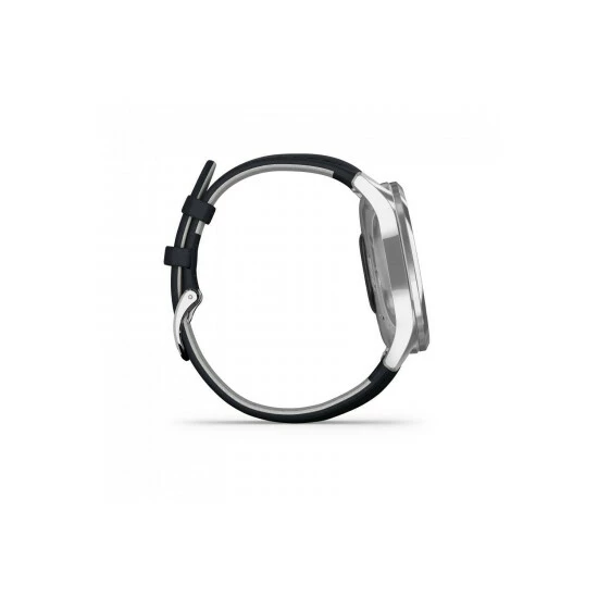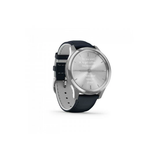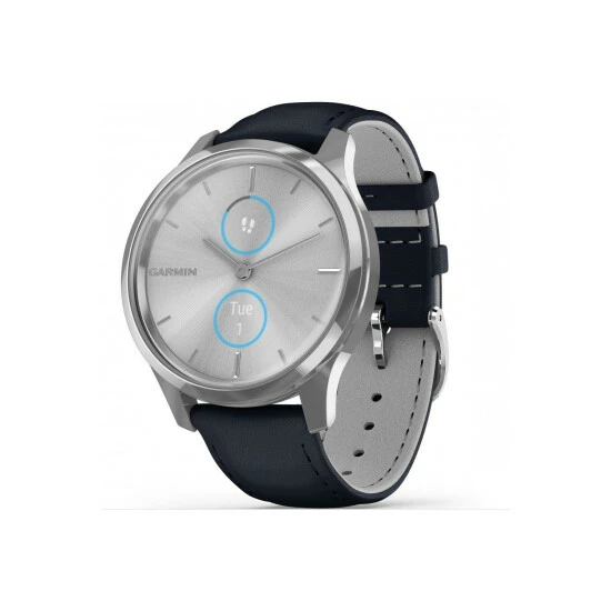 Smart Watch Type : Hybrid | GPS Tracking | Heart Rate Monitoring | Step Counter | Sleep Tracker | NFC Enabled | Primary Material : Stainless Steel | Case depth approx : 11.90mm | Case width approx : 42.00mm | Case shape : Circle | Strap type : Leather strap | Strap colour : Dark Blue | Dial colour : Silver | Glass : Sapphire | Movement : Analogue Quartz | Water Resistance : 5 ATM | Guarantee : 2 years