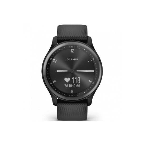 Smart Watch Type : Hybrid | GPS Tracking | Heart Rate Monitoring | Step Counter | Sleep Tracker | Screen Type : Touch | Primary Material : Plastic/Resin | Case depth approx : 11.00mm | Case width approx : 40.00mm | Case shape : Circle | Strap type : Rubber Strap | Strap colour : Black | Dial colour : Black | Glass : Gorilla Glass | Movement : Complication | Water Resistance : 5 ATM | Guarantee : 24 Months