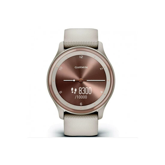 Smart Watch Type : Hybrid | GPS Tracking | Heart Rate Monitoring | Step Counter | Sleep Tracker | Screen Type : Touch | Primary Material : Plastic/Resin | Case depth approx : 11.00mm | Case width approx : 40.00mm | Case shape : Circle | Strap type : Rubber Strap | Strap colour : White | Dial colour : Rose | Glass : Gorilla Glass | Movement : Complication | Water Resistance : 5 ATM | Guarantee : 24 Months
