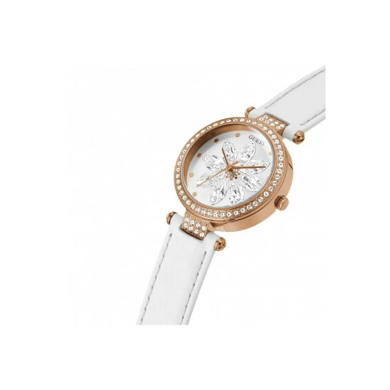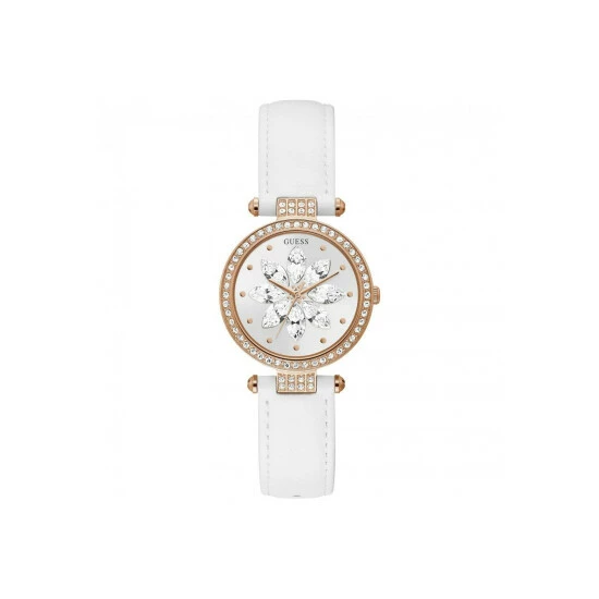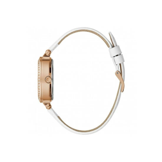 Primary Material : Stainless Steel | Case depth approx : 11.70mm | Case width approx : 32.00mm | Strap type : Leather strap | Strap colour : White | Clasp type : Strap buckle | Dial colour : Rose | Glass : Mineral | Movement : Quartz | Water Resistance : 30 metres | Guarantee : 2 years
