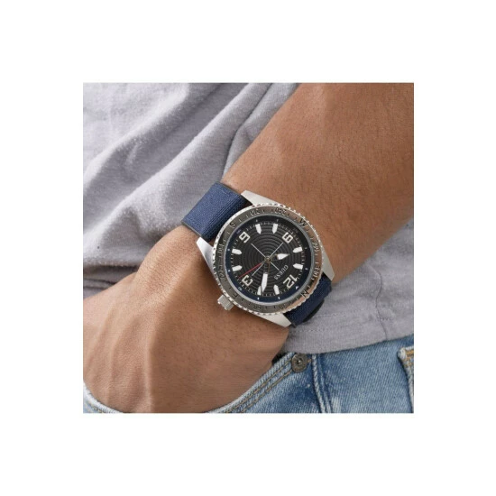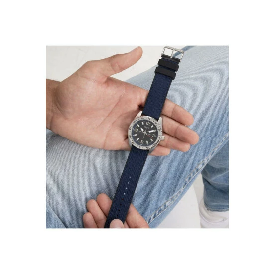 Primary Material : Stainless Steel | Case depth approx : 10.30mm | Case width approx : 42.00mm | Case shape : Circle | Strap type : Rubber Strap | Strap colour : Blue | Clasp type : Strap buckle | Dial colour : Black | Glass : Mineral | Movement : Quartz | Water Resistance : 50 metres | Guarantee : 2 years
