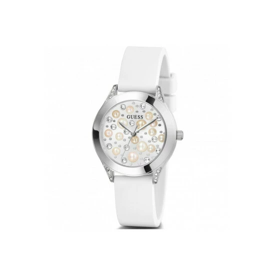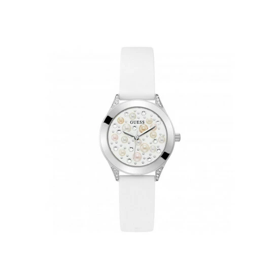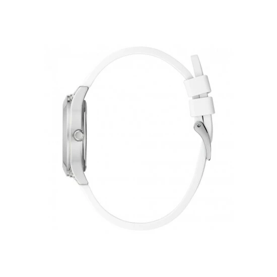 Primary Material : Stainless Steel | Case depth approx : 10.45mm | Case width approx : 36.00mm | Strap type : Rubber Strap | Strap colour : White | Clasp type : Strap buckle | Dial colour : Silver | Glass : Mineral | Movement : Quartz | Water Resistance : 30 metres | Guarantee : 2 years