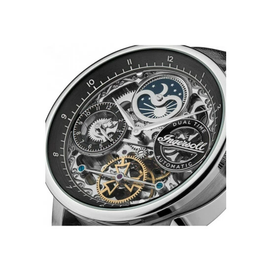 Primary Material : Stainless Steel | Case depth approx : 16.00mm | Case width approx : 42.00mm | Case shape : Circle | Strap type : Leather strap | Strap colour : Black | Clasp type : Strap buckle | Dial colour : Skeleton | Glass : Mineral | Movement : Automatic | Water Resistance : 50 metres | Guarantee : 2 years