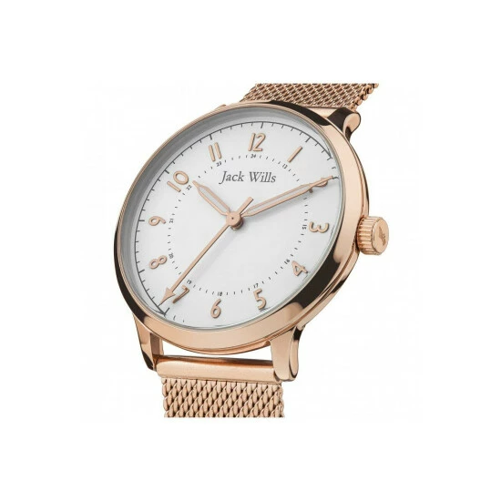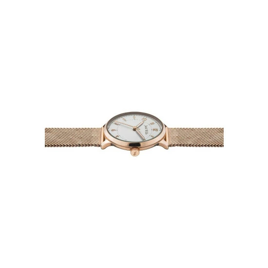 Battery Type : silver oxide | Primary Material : Base metal | Case depth approx : 7.00mm | Case width approx : 38.00mm | Case shape : Circle | Strap type : Mesh Bracelet | Strap colour : Rose Gold | Clasp type : Strap buckle | Dial colour : White | Glass : Mineral | Movement : Quartz | Movement Source : Japan | Water Resistance : 30 metres | Guarantee : 2 years