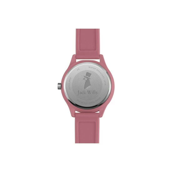 Battery Type : silver oxide | Case depth approx : 9.00mm | Case width approx : 42.00mm | Case shape : Circle | Strap type : Rubber Strap | Strap colour : Pink | Clasp type : Strap buckle | Dial colour : White | Glass : Mineral | Movement : Quartz | Movement Source : Japan | Water Resistance : 30 metres | Guarantee : 2 years
