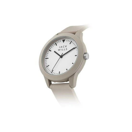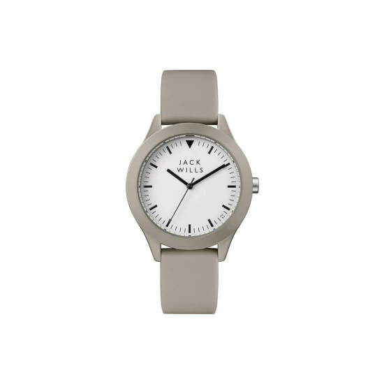 Battery Type : silver oxide | Primary Material : Base metal | Case depth approx : 10.00mm | Case width approx : 40.00mm | Case shape : Circle | Strap type : Rubber Strap | Strap colour : Grey | Clasp type : Strap buckle | Dial colour : White | Glass : Mineral | Movement : Quartz | Movement Source : China | Water Resistance : 30 metres | Guarantee : 2 years