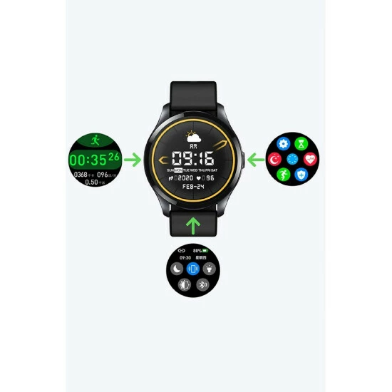 Silicone strap, aluminum alloy shell, and curved glass cover. Touch Screen, App Control, IP68 Waterproof, Thermometer, Alarm Clock, Calculator, Call Reminder, Message Reminder, Fitness Tracker, Sleep Tracker, Mood Tracker, Heart Rate Tracker, Blood Oxygen Monitor, Hear Rate / Blood Pressure, Sleep Monitor. Clean your watch as often as possible. Take a soft cloth and wipe down the band and the case to remove any dirt or dust. No Water