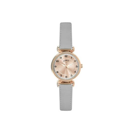 Primary Material : PVD rose plating | Case depth approx : 9.00mm | Case width approx : 22.00mm | Case shape : Circle | Strap type : Leather strap | Strap colour : Grey | Dial colour : Rose | Movement : Quartz | Movement Source : Japan | Water Resistance : No | Guarantee : 2 years