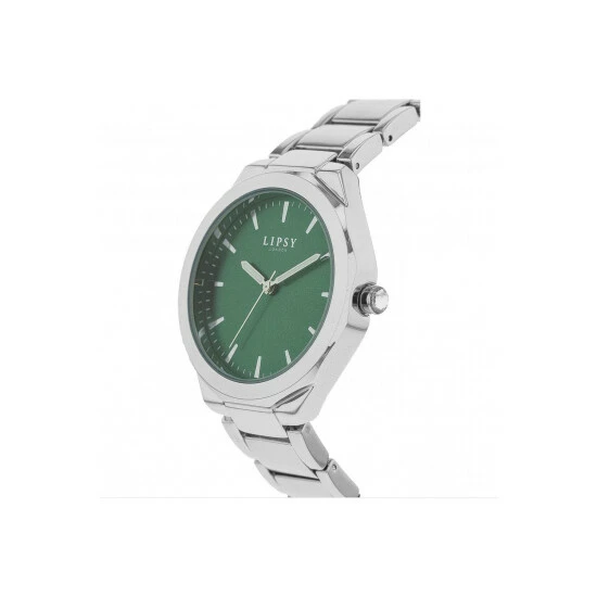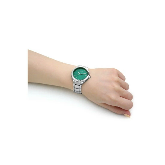Battery Type : silver oxide | Primary Material : Base metal | Case depth approx : 10.00mm | Case width approx : 39.00mm | Case shape : Circle | Strap type : Metal bracelet | Strap colour : Silver | Clasp type : Clasp | Dial colour : Green | Glass : Mineral | Movement : Quartz | Water Resistance : 30 metres | Guarantee : 1 Years