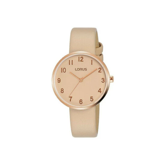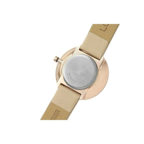 Battery Type : silver oxide | Primary Material : Stainless Steel | Case depth approx : 8.00mm | Case width approx : 32.00mm | Case shape : Circle | Strap type : Leather strap | Strap colour : Beige | Clasp type : Strap buckle | Dial colour : Beige | Glass : Mineral | Movement : Quartz | Movement Source : Japan | Water Resistance : Water resistant | Guarantee : 2 Years Limited