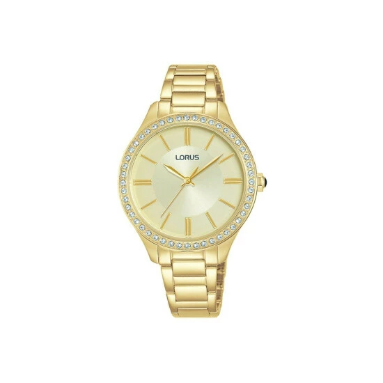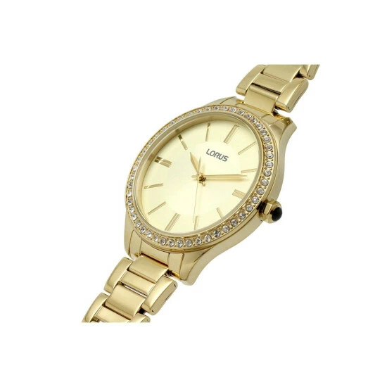 Primary Material : Stainless Steel | Case depth approx : 7.60mm | Case width approx : 33.00mm | Case shape : Circle | Strap type : Metal bracelet | Strap colour : Gold | Clasp type : Fold-over Deployment | Dial colour : Champagne | Glass : Mineral | Movement : Quartz | Movement Source : Japan | Water Resistance : 50 metres | Guarantee : 2 years
