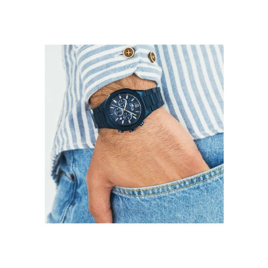 Battery Type : silver oxide | Primary Material : Stainless Steel | Case depth approx : 11.15mm | Case width approx : 41.80mm | Case shape : Hexagon | Strap type : Metal bracelet | Strap colour : Blue | Clasp type : Fold-over Deployment | Dial colour : Blue | Glass : Mineral | Movement : Quartz | Movement Source : Japan | Water Resistance : 50 metres | Guarantee : 2 years Years