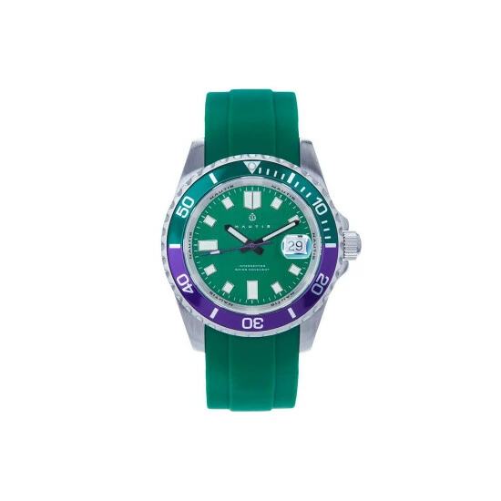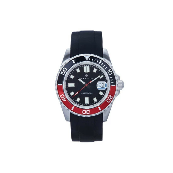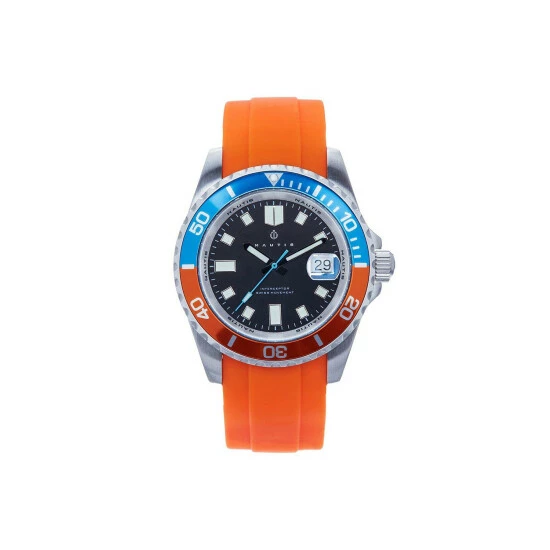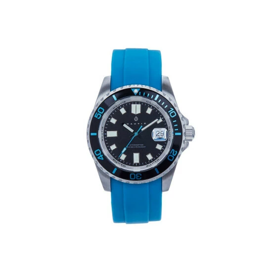316L surgical-quality stainless steel case. Swiss ronda 515 quartz movement. Sapphire-coated mineral crystal. Uni-directional rotating bezel. Interchangeable rubber strap and 316L surgical-quality stainless steel bracelet. Spring bar for easy interchange bands. Band changing tool. Logo-engraved stainless steel clasp. Swiss super-luminova hands. Swiss super-luminova markers. Magnified date display. 43mm diameter. 50 ATM (professional diver water resistance).