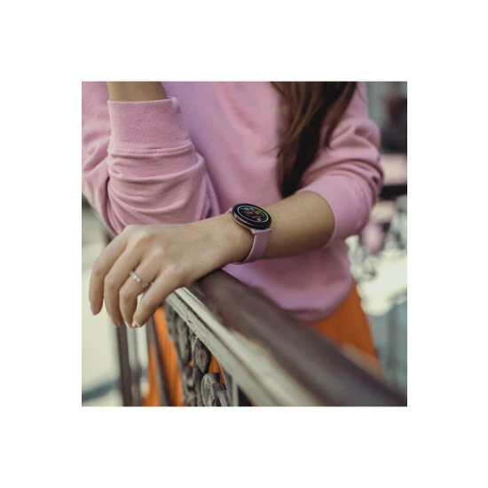 Smart Watch Type : Smart Touch | GPS Tracking | Heart Rate Monitoring | Step Counter | Sleep Tracker | Screen Type : amoled | RAM : 5MB | Storage : 32MB | Battery Type : lithium polymer | Primary Material : Plastic/Resin | Case depth approx : 8.45mm | Case width approx : 43.30mm | Case shape : Circle | Strap type : Rubber Strap | Strap colour : Lilac | Dial colour : Lilac | Glass : Gorilla Glass | Movement : Digital Quartz | Water Resistance : 3 ATM | Guarantee : 2 years
