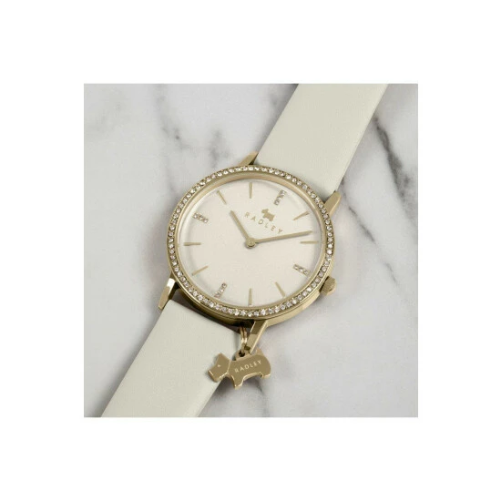 Primary Material : Base metal | Case depth approx : 6.00mm | Case width approx : 35.00mm | Case shape : Circle | Strap type : Leather strap | Strap colour : Grey | Clasp type : Strap buckle | Dial colour : Champagne | Glass : Mineral | Movement : Quartz | Movement Source : Swiss | Water Resistance : 30 metres | Guarantee : 2 Year