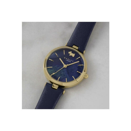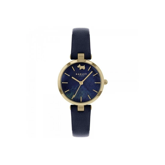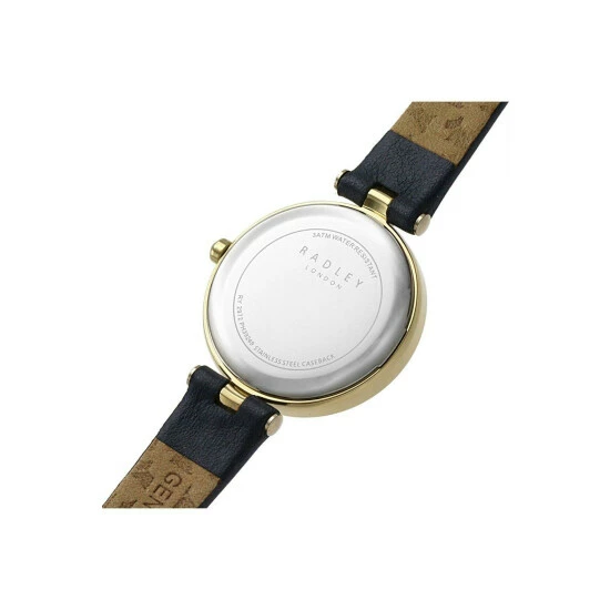 Primary Material : Gold Plated Stainless Steel | Case depth approx : 8.00mm | Case width approx : 28.00mm | Case shape : Circle | Strap type : Leather strap | Strap colour : Navy | Clasp type : Strap buckle | Dial colour : Navy | Glass : Mineral | Movement : Quartz | Movement Source : Japan | Water Resistance : 30 metres | Guarantee : 2 years