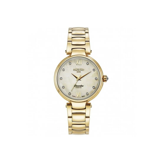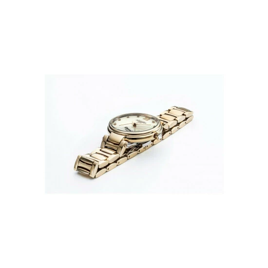 Primary Material : Plated Stainless Steel | Case depth approx : 8.00mm | Case width approx : 33.00mm | Strap type : Metal bracelet | Strap colour : Gold | Clasp type : Butterfly with push buttons | Dial colour : Champagne | Glass : Sapphire | Movement : Quartz | Movement Source : Swiss | Water Resistance : 50 metres | Guarantee : 7yr