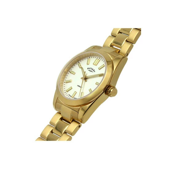 Primary Material : Stainless Steel | Case depth approx : 9.00mm | Case width approx : 30.00mm | Case shape : Circle | Strap type : Metal bracelet | Strap colour : Gold | Clasp type : Butterfly | Dial colour : White | Glass : Sapphire | Movement : Quartz | Movement Source : Japan | Water Resistance : 50 metres | Guarantee : 2 Years