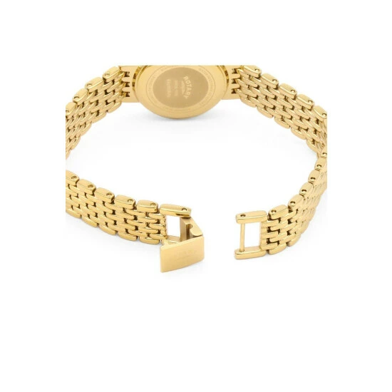 Primary Material : Plated Stainless Steel | Case width approx : 23.00mm | Case shape : Circle | Strap type : Metal bracelet | Strap colour : Gold | Clasp type : Jewellery Clasp | Dial colour : Mother of pearl | Glass : Sapphire | Movement : Quartz | Movement Source : Japan | Water Resistance : 50 metres | Guarantee : 2 years