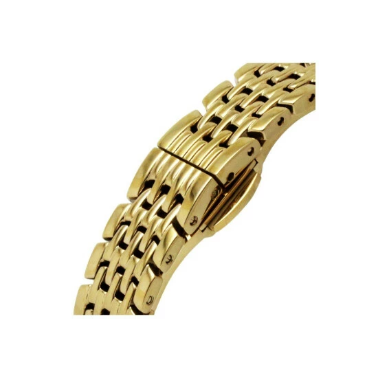 Primary Material : Stainless Steel | Case depth approx : 5.70mm | Case width approx : 27.00mm | Case shape : Circle | Strap type : Metal bracelet | Strap colour : Gold | Clasp type : Butterfly | Dial colour : White | Glass : Sapphire | Movement : Quartz | Water Resistance : 50 metres | Guarantee : 2 Years