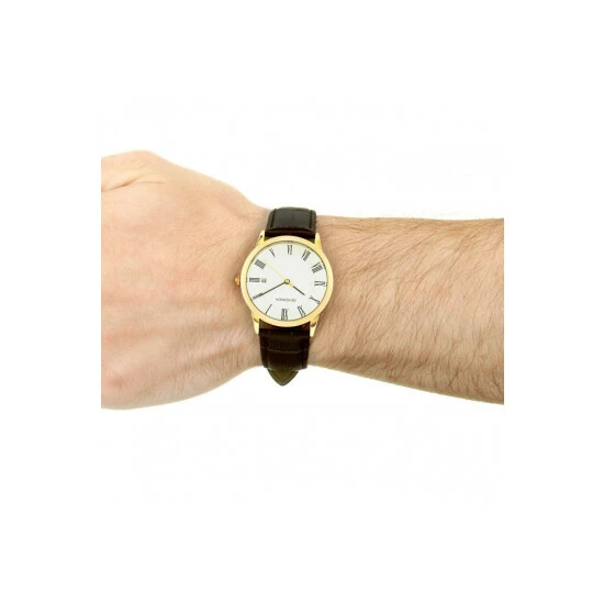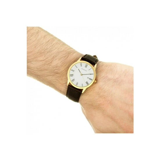 Case depth approx : 8.00mm | Case width approx : 37.00mm | Case shape : Circle | Strap type : Leather strap | Strap colour : Brown | Clasp type : Strap buckle | Dial colour : White | Movement : Quartz | Movement Source : Japan | Water Resistance : 30 metres | Includes date function | Guarantee : 2 years