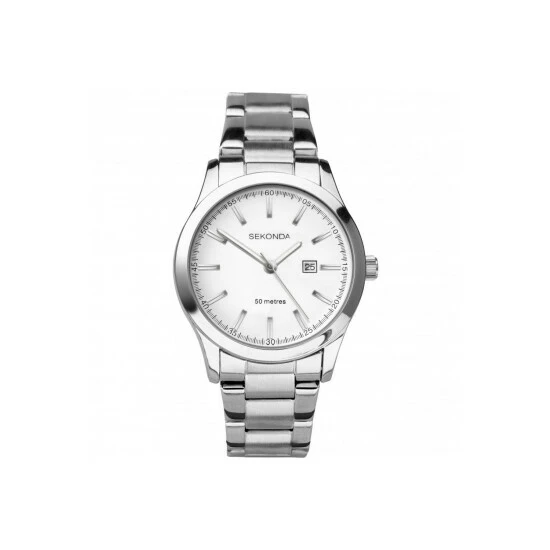 Primary Material : Base metal | Case depth approx : 11.00mm | Case width approx : 37.00mm | Strap type : Metal bracelet | Strap colour : Silver | Clasp type : Fold-over Deployment | Dial colour : White | Glass : Mineral | Movement : Quartz | Water Resistance : 50 metres | Guarantee : 2 years