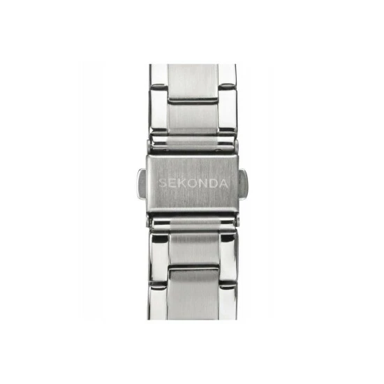 Primary Material : Base metal | Case depth approx : 12.00mm | Case width approx : 43.00mm | Strap type : Metal bracelet | Strap colour : Silver | Clasp type : Fold-over Deployment | Dial colour : Blue | Glass : Mineral | Movement : Quartz | Water Resistance : 50 metres | Guarantee : 2 years