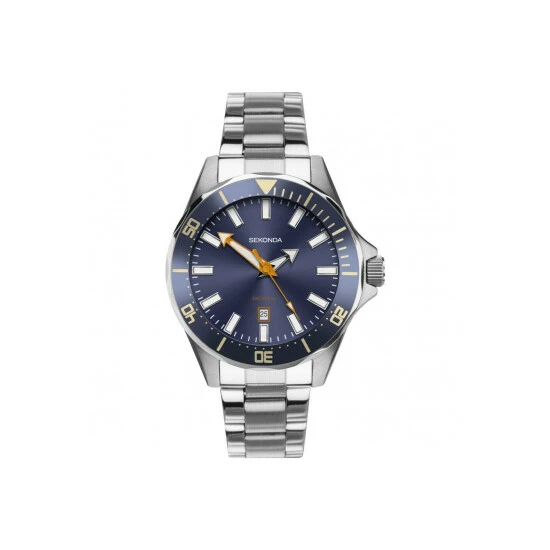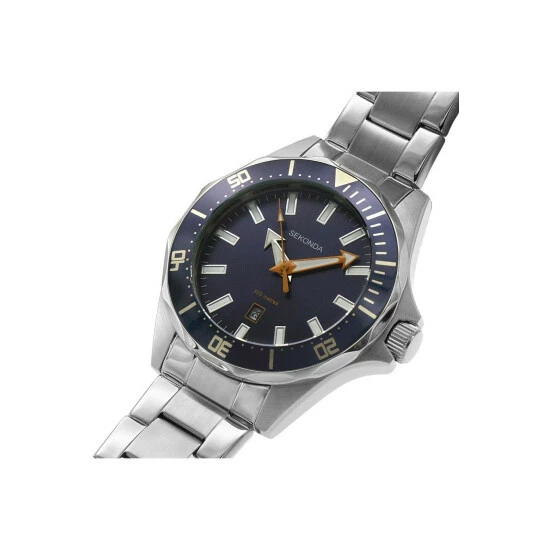 Primary Material : Stainless Steel | Case shape : Circle | Strap type : Metal bracelet | Strap colour : Silver | Clasp type : Fold-over Deployment | Dial colour : Blue | Glass : Mineral | Movement : Quartz | Movement Source : Japan | Water Resistance : 200 metres | Includes date function | Guarantee : 2 years