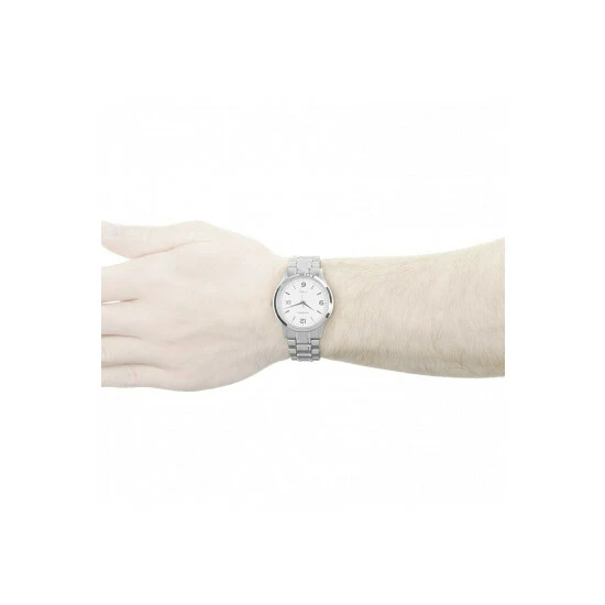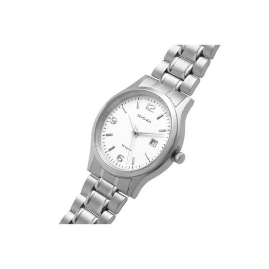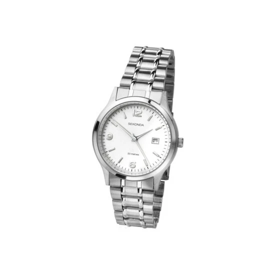 Primary Material : Stainless Steel | Case depth approx : 10.00mm | Case width approx : 39.00mm | Case shape : Circle | Strap type : Metal Bracelet | Strap colour : Silver | Clasp type : Fold-over Deployment | Dial colour : White | Movement : Quartz | Movement Source : Japan | Water Resistance : 50 metres | Includes date function | Guarantee : 2 years