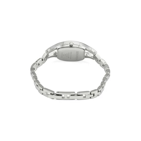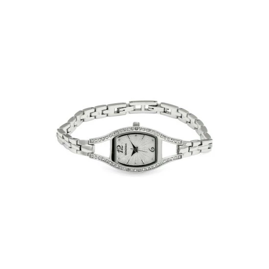 Primary Material : Stainless Steel | Case depth approx : 8.00mm | Case width approx : 20.00mm | Case shape : Tonneau | Strap type : Metal bracelet | Strap colour : Silver | Clasp type : Jewellery Clasp | Dial colour : Silver | Movement : Quartz | Movement Source : Japan | Water Resistance : 30 metres | Guarantee : 2 years