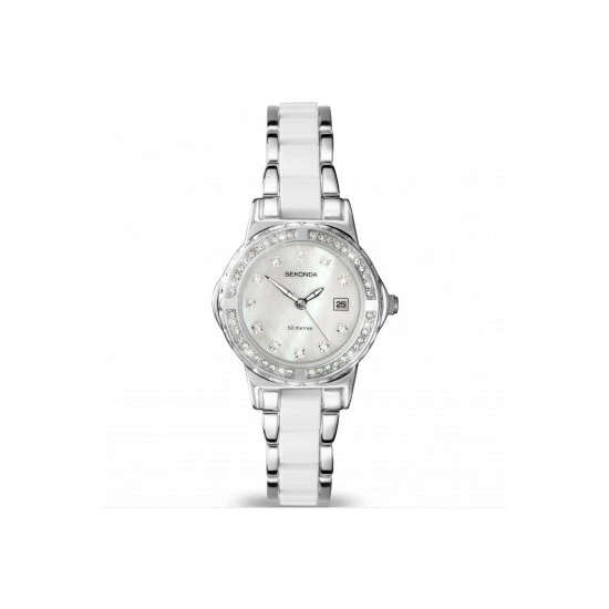 Primary Material : Stainless Steel | Case depth approx : 9.00mm | Case width approx : 30.00mm | Case shape : Circle | Strap type : Metal bracelet | Strap colour : Two tone | Clasp type : Jewellery Clasp | Dial colour : Mother of pearl | Glass : Mineral | Movement : Quartz | Movement Source : Japan | Water Resistance : 50 metres | Includes date function | Guarantee : 2 Years